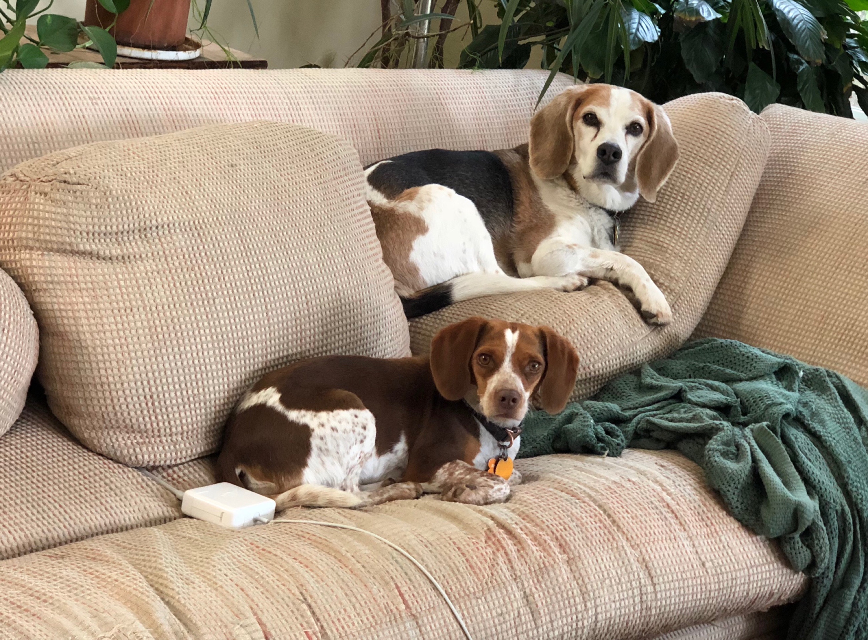 What could be better in life than a lap full of beagles. These are fosters Remi and Scout.